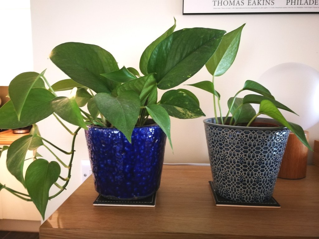 That brief dalliance with decorative objects blossomed into a lasting love affair once the hubby and I secured a place of our own. Now I’m perpetually on the lookout for the next stylish what’s-it that I absolutely have to have. One recent Saturday we were in a local home décor boutique that sells everything from embroidered pillows to up-cycled milking stools to wall paint with colour names like “Aged Paper” and “Biscuit.” (This is how we spend our weekend afternoons now.) We were looking for a glazed plant pot that would serve as a mate to a midnight-blue one in our living room, which holds a devil’s ivy that cascades rather fetchingly down the side of our drinks cabinet. Amongst the shop’s bits and bobs we found a small pot that was lighter in shade and which had a different etched pattern than the one we owned. We debated whether it was too different, but my newly honed Spidey sense told me the two pots would complement each other. We bought it and took it back to the flat and sure enough, I was right. I have to say I was quite smug about it.
